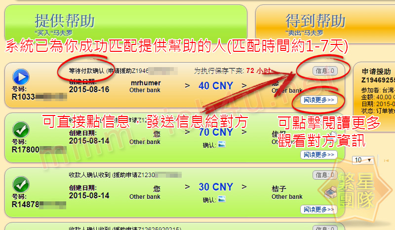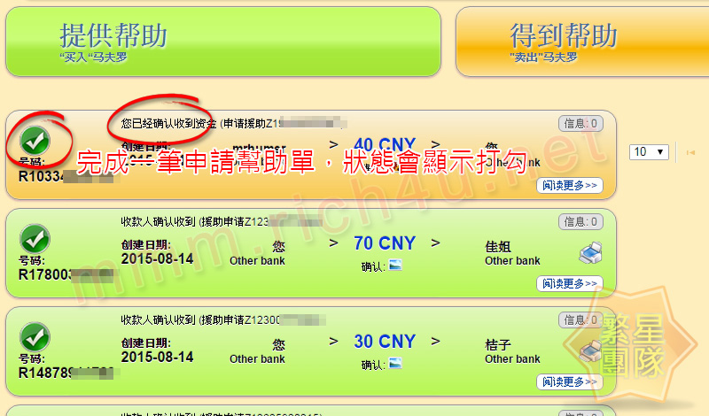 從提供幫助到申請幫助,一次的投資,到此結束,如果想再繼續提供幫助,再從