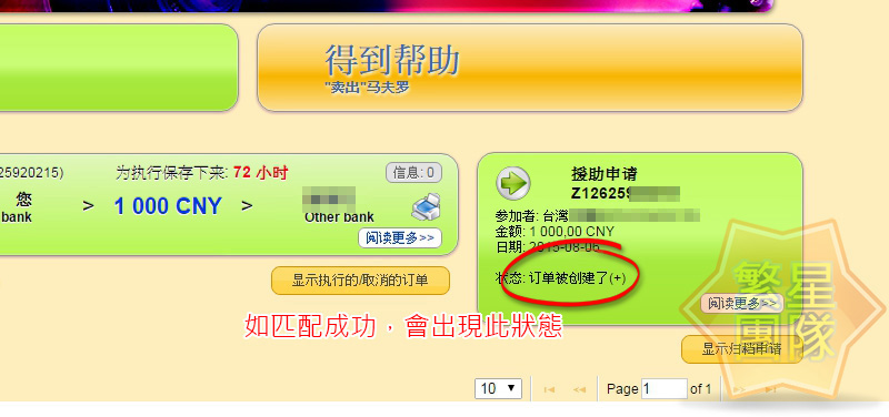 匹配成功後,會出現以下的狀態,系統不會通知,所以要不時的進後台查看,再來就要進行付款的動作(需在72小時內進行)