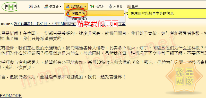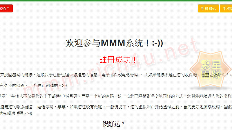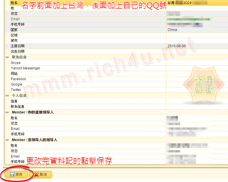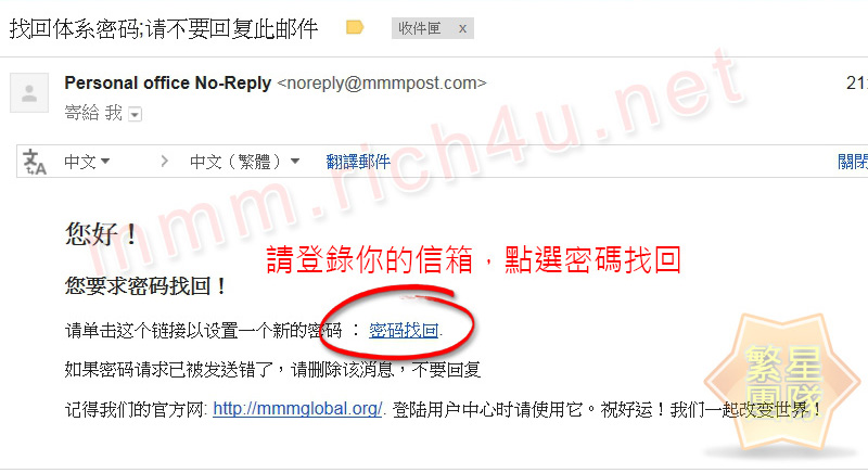 註冊教學 2015-09-06 10:06 1.註冊連結請向你的邀請人索取 免費註冊MMM ★領導人資料一定要填寫,不然會變孤兒,找不到人協助喔★ 2.填寫個人資料 3. 4.如果點擊密碼找回沒反應,無法開啟網頁,把信件設定為"正常信件",就可正常開啟。 5. 6. 7. 8. 9. 10. 11. 12. 13.